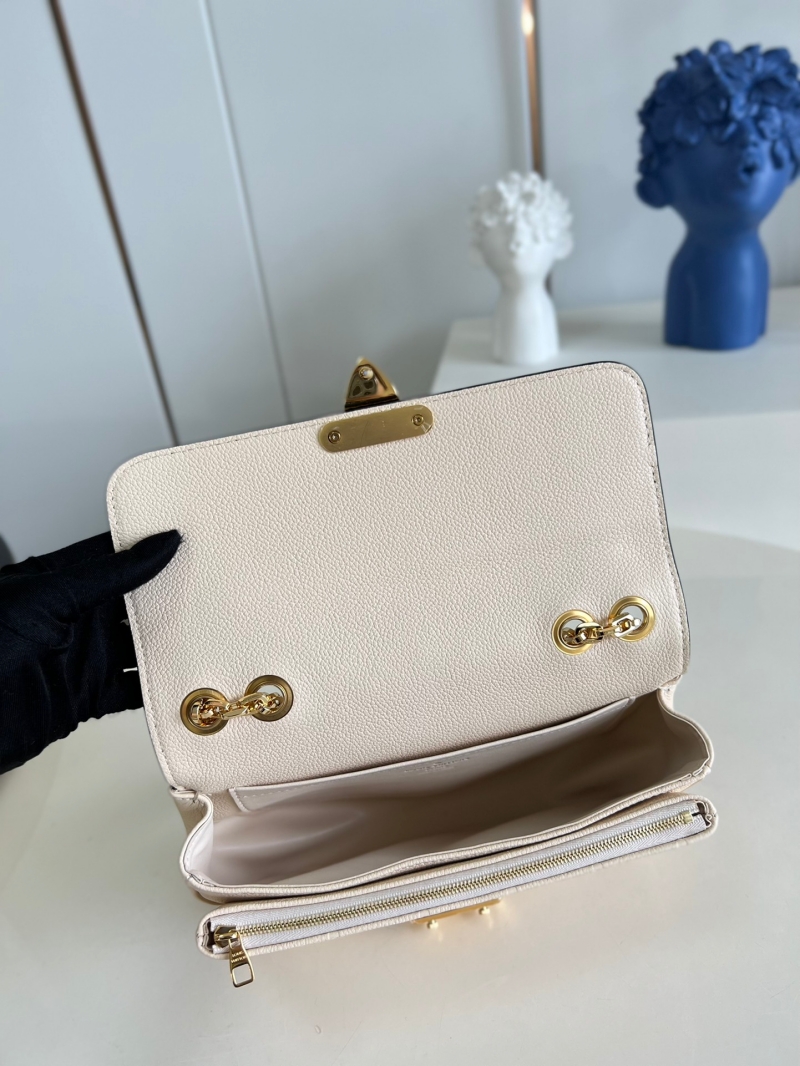 • M46201 LV MARCEAU 手袋 2022新款 LV壓紋牛皮鏈條包 奶白色