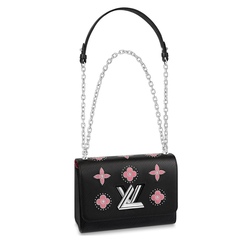 • M52134 Twist 中號手袋 Monogram Flowers印花女包 LV鏈條包 黑色