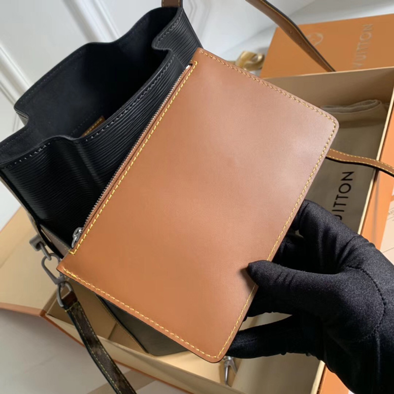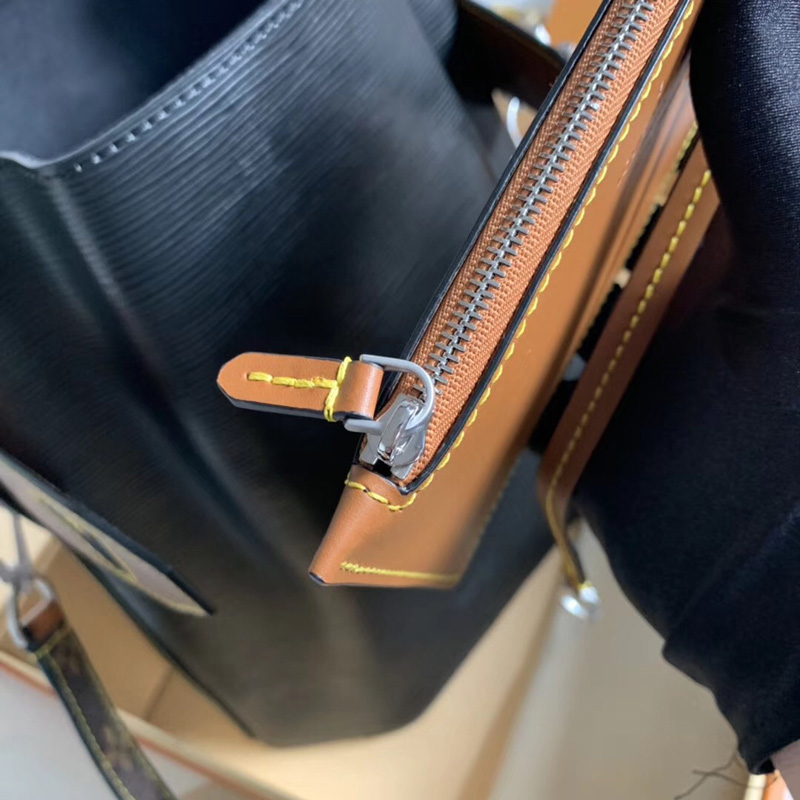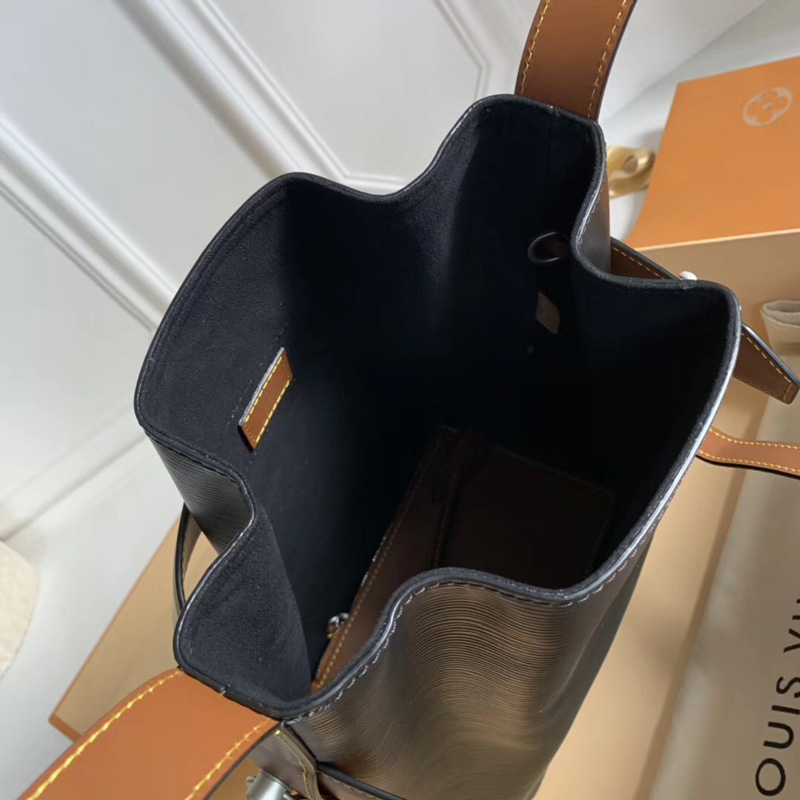 • 結構:黑色 粒紋Epi皮革 光滑的牛皮飾邊 超細纖維內襯 銀色金屬飾件 配可調節搭扣的皮革手柄 可調節皮革與Monogram帆布包帶 標志性銀色LV Twist迷你扭鎖 內置牛皮小包 三種背攜方式