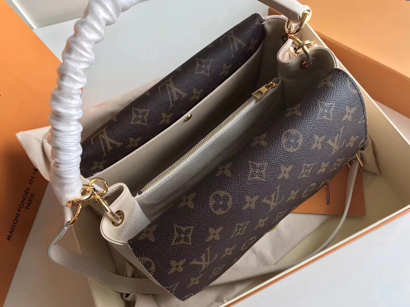 M54438 LV DOUBLE V 手袋 LV女包 翻蓋式拼色老花單肩手提包 奶白色
