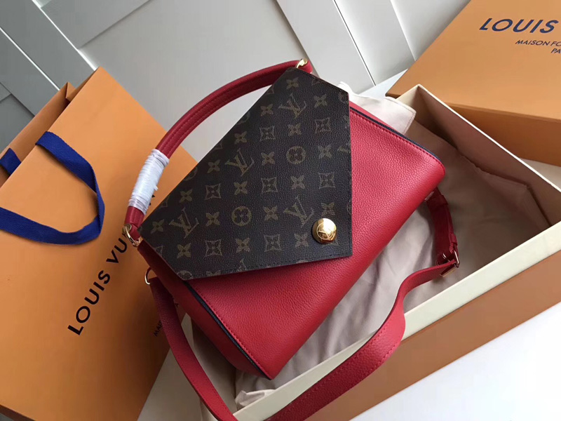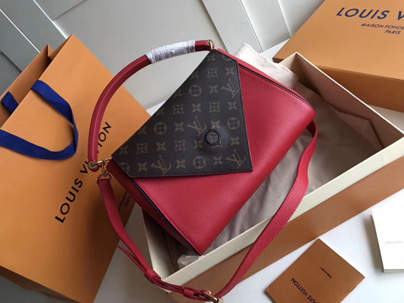 - M54624 LV DOUBLE V 手袋 LV女包 翻蓋式拼色老花單肩手提包 紅色