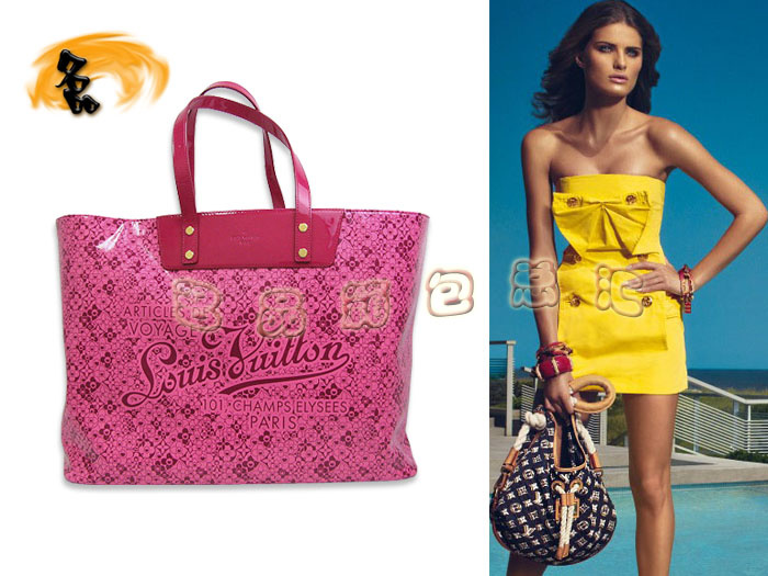 - M93163 LV新款沙灘包 LV亮皮女包 LV單肩包 LV女包 1:1品質 桃紅色