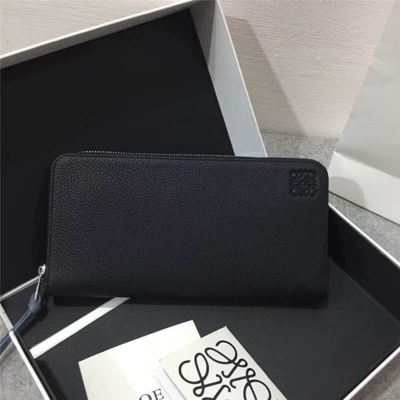 • 3598 Loewe錢包 羅意威新款 T拉鏈長夾 軟珠地小牛皮 黑色