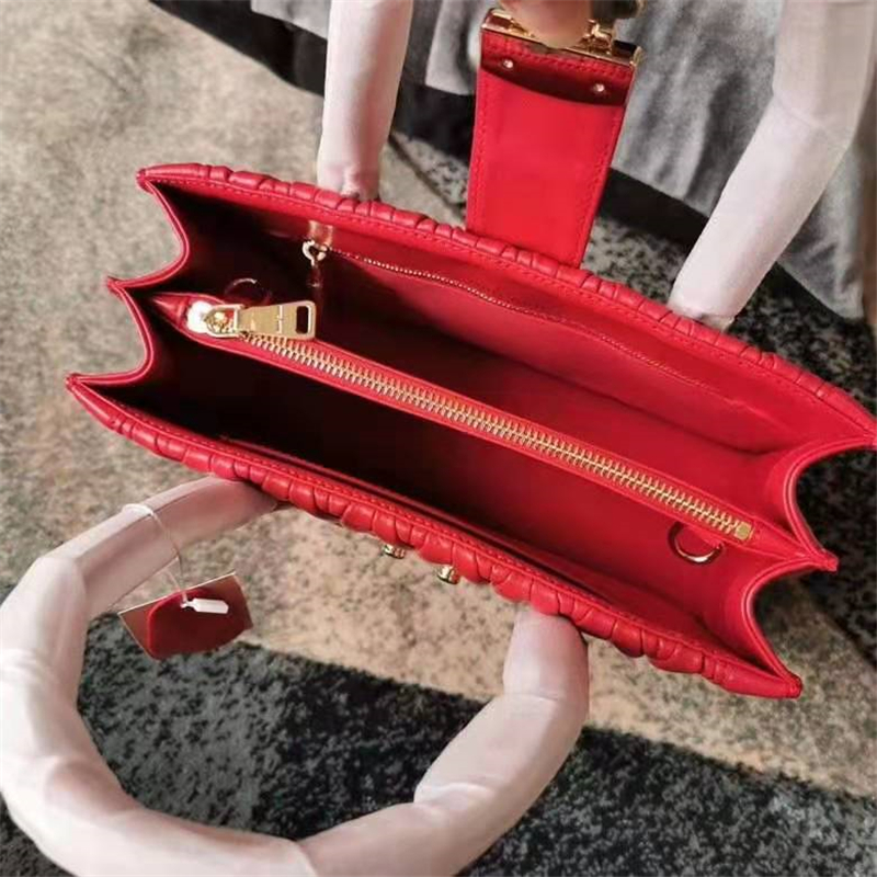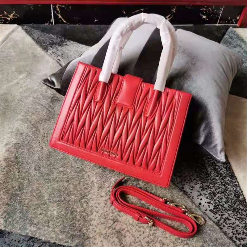 • 5BA126 MiuMiu專柜新款 小羊皮 翻蓋鎖扣 繆繆手提斜跨包 紅色