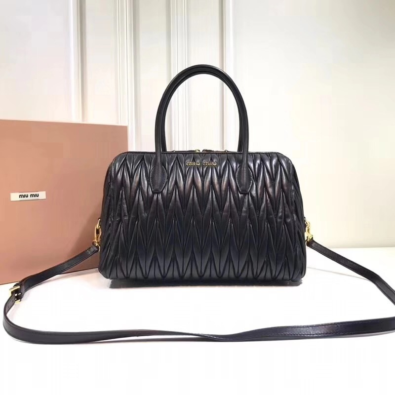 • 5BB033 MIUMIU繆繆 專柜新款 TOP HANDLE 軟羊革手提包 黑色