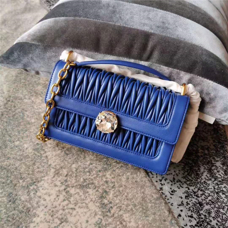 • 5BD130 MiuMiu專柜新款 提花壓紋 羊羔皮 繆繆鏈條包 藍色