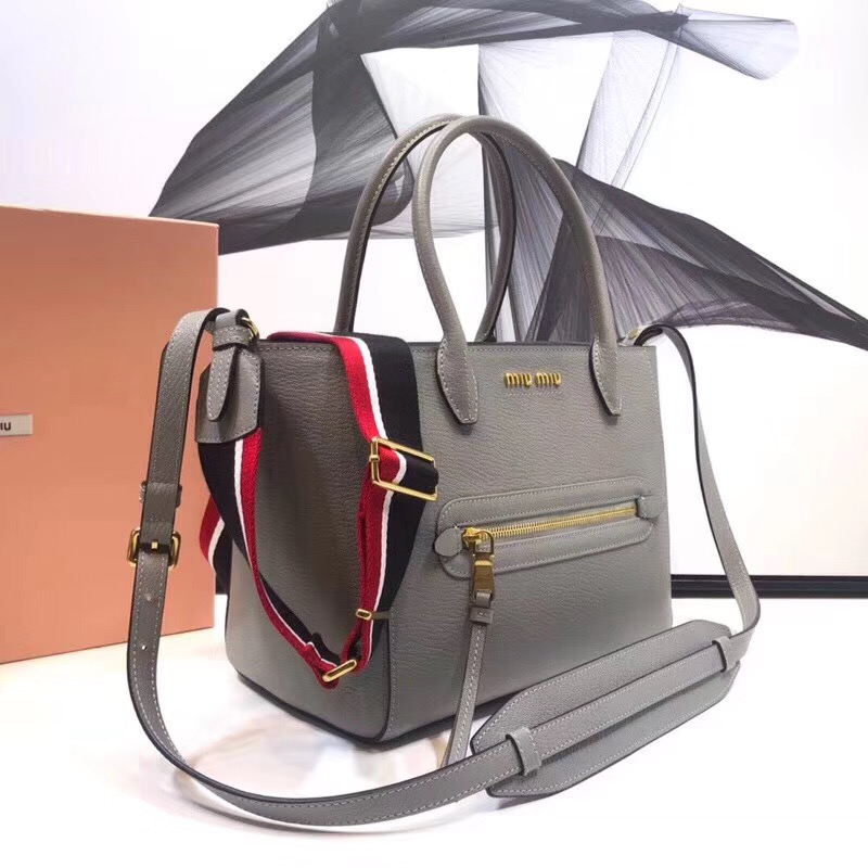 5BG137 MIUMIU專柜新款蝙蝠包 山羊皮 雙提手 單肩斜跨包 灰色