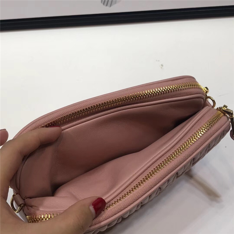 • 5BH009 MIUMIU繆繆 專柜新款 雙拉鏈 迷你 鏈條肩包 粉色