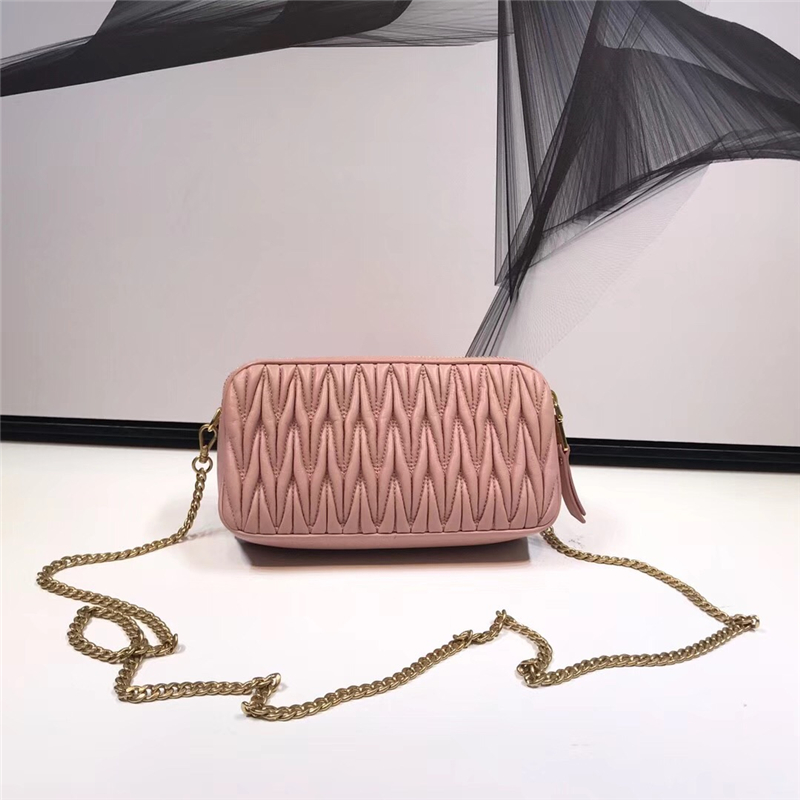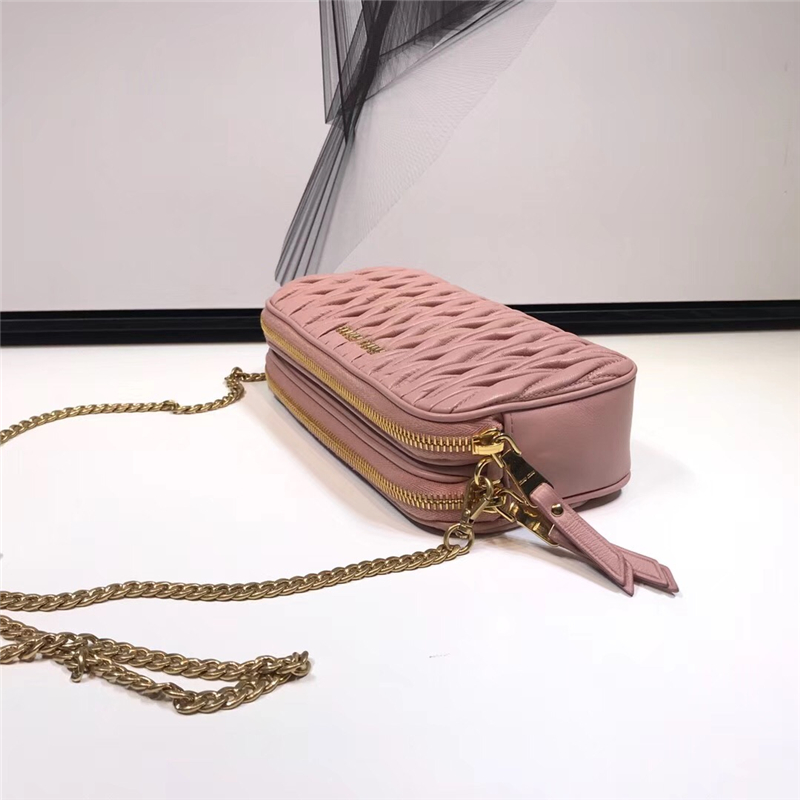 5BH009 MIUMIU繆繆 專柜新款 雙拉鏈 迷你 鏈條肩包 粉色