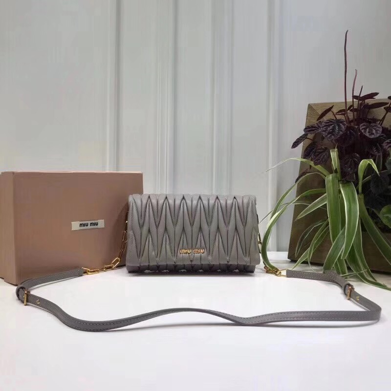 • 5BH017 MIUMIU繆繆 專柜新款 羊皮提花凸紋 翻蓋包袋 灰色