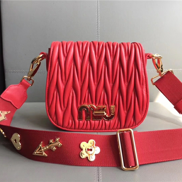 5BH085 MIUMIU繆繆 專柜新品 小羊皮 轉鎖開合 徽章肩帶斜挎包 紅色