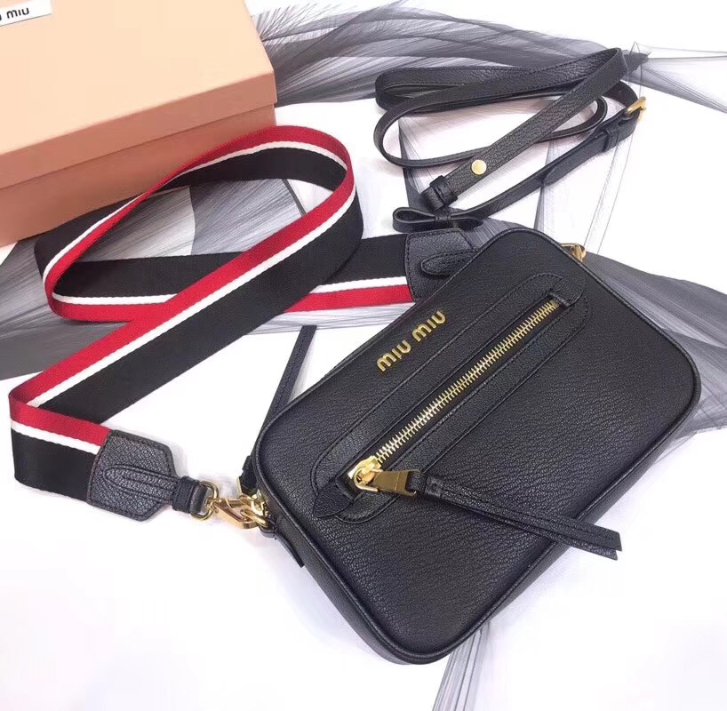 5BH116 MIUMIU專柜新款相機包 山羊皮 長方形 單肩斜跨包 黑色