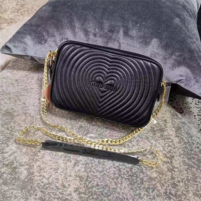 • 5BH118C MiuMiu繆繆 Matelasse小羊皮 心形壓紋 繆繆鏈條包 黑色