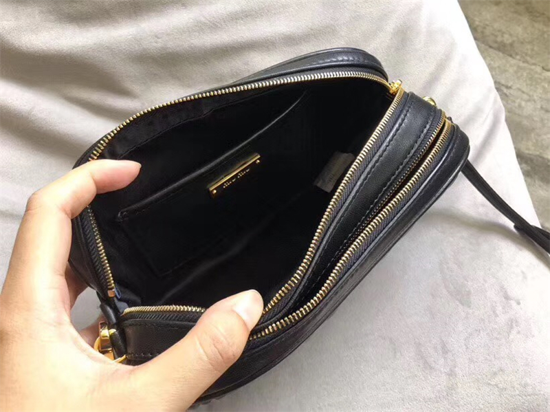 • 5BH539 MIUMIU繆繆 專柜新款 提花壓紋 雙拉鏈迷你包 黑色