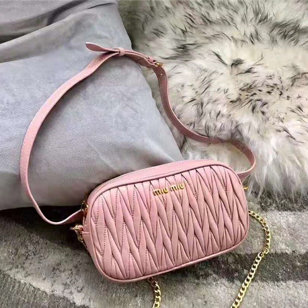 5BL005 MiuMiu繆繆 軟羊皮 經(jīng)典褶皺 拉鏈 腰包單肩包 粉色