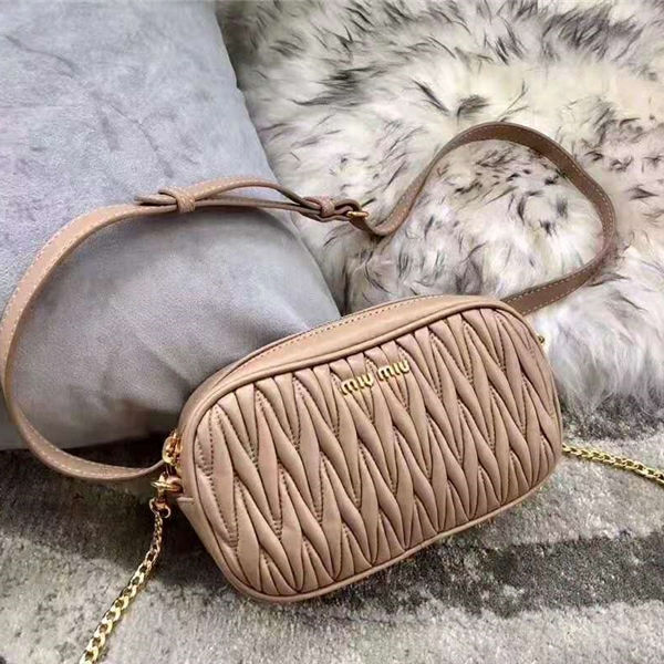 5BL005 MiuMiu繆繆 軟羊皮 經(jīng)典褶皺 拉鏈 腰包單肩包 卡其