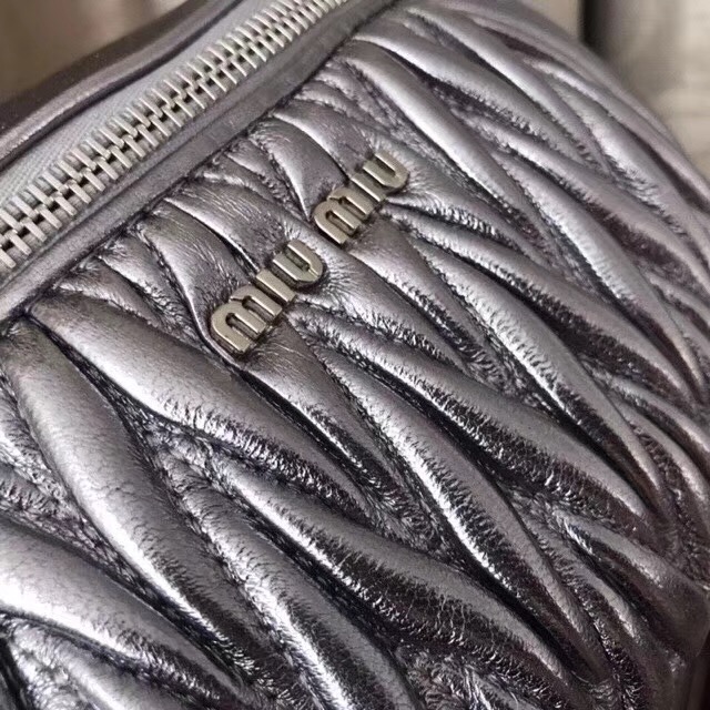 5BL010 MIUMIU專柜新款 腰包 褶皺綿羊皮 腰包單肩 兩用包 槍色