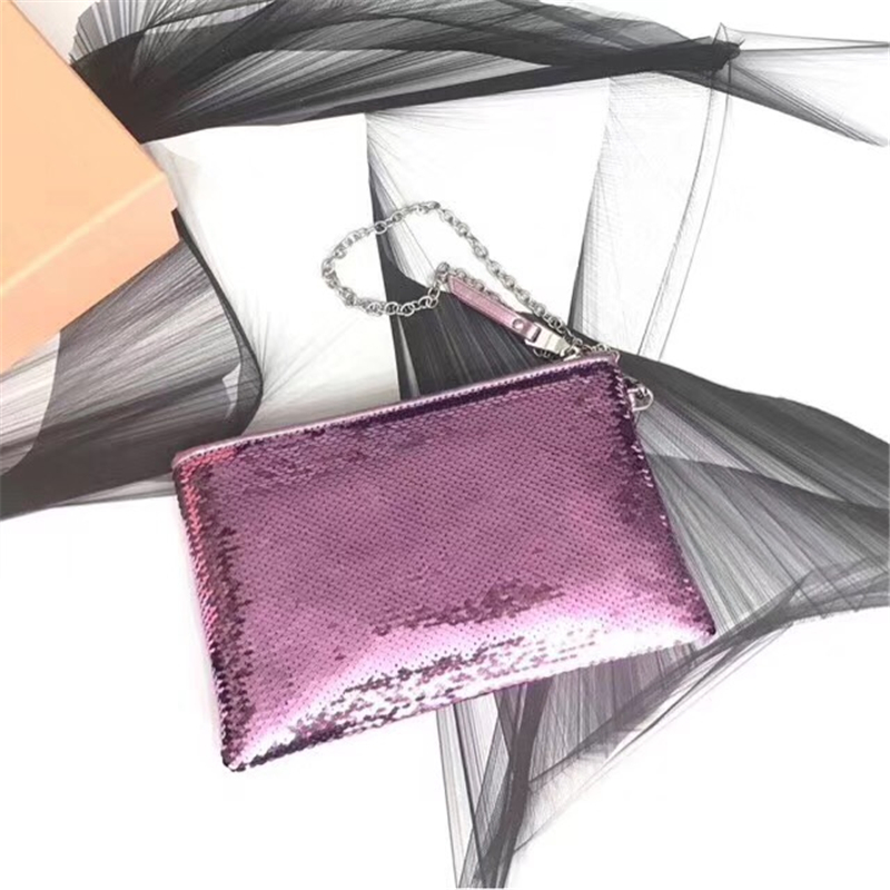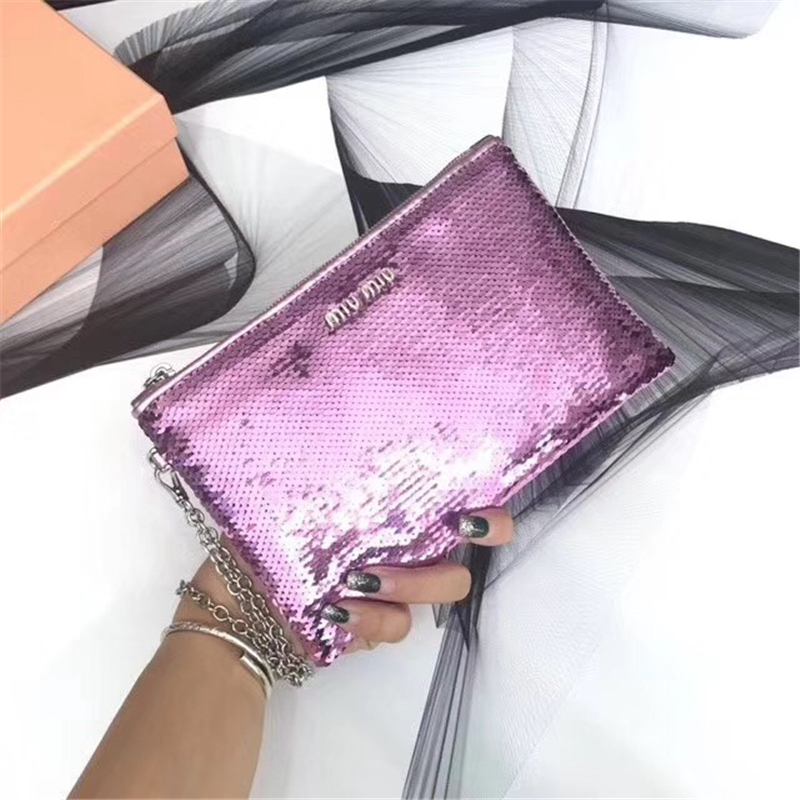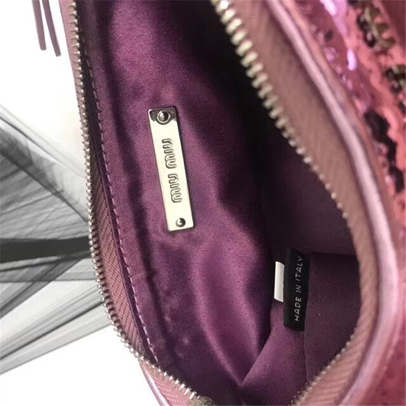 5NH81C MIUMIU專柜新款 手工珠刺繡 亮片單肩手拿包 粉紫