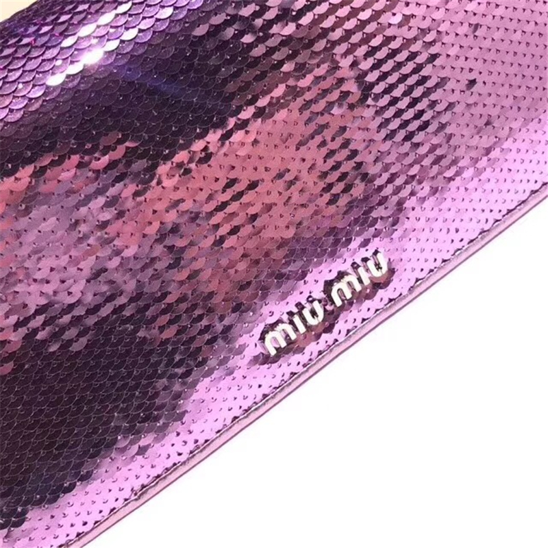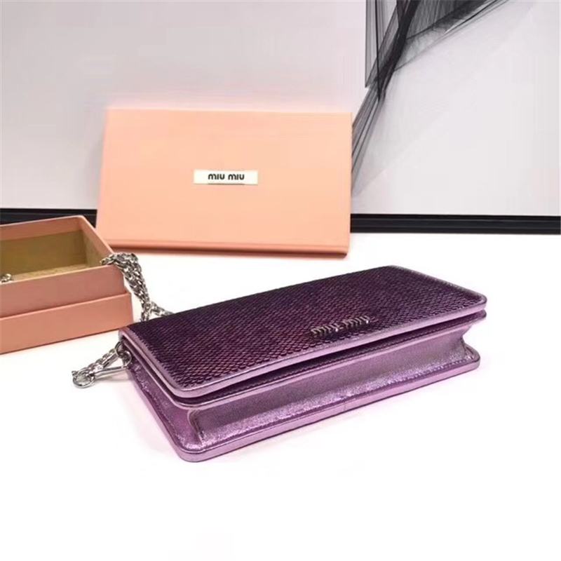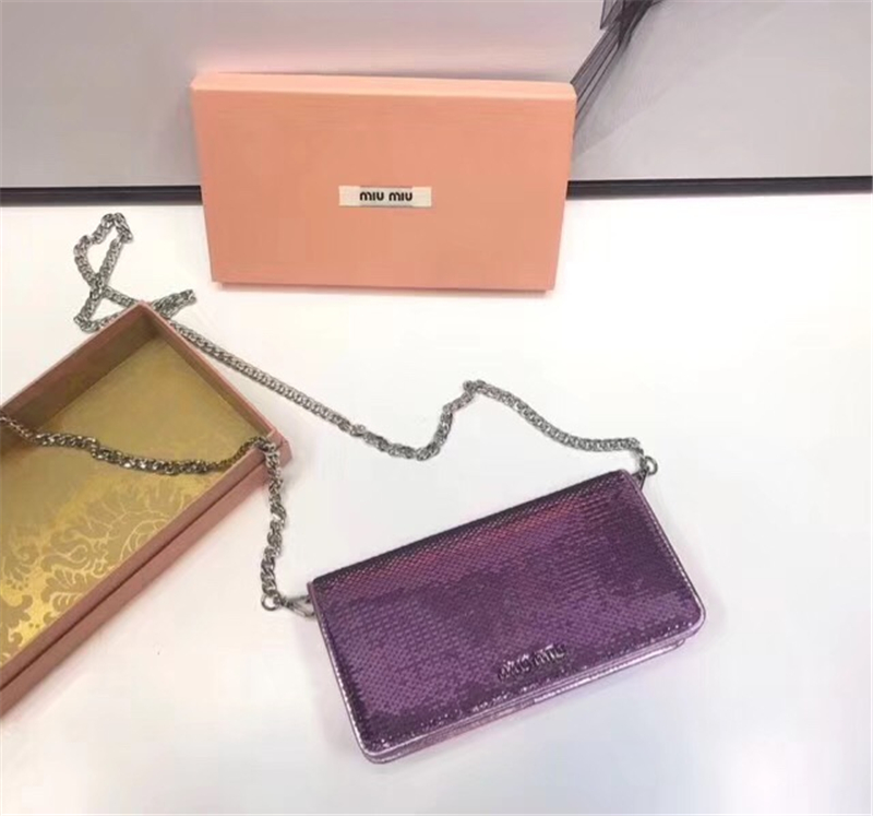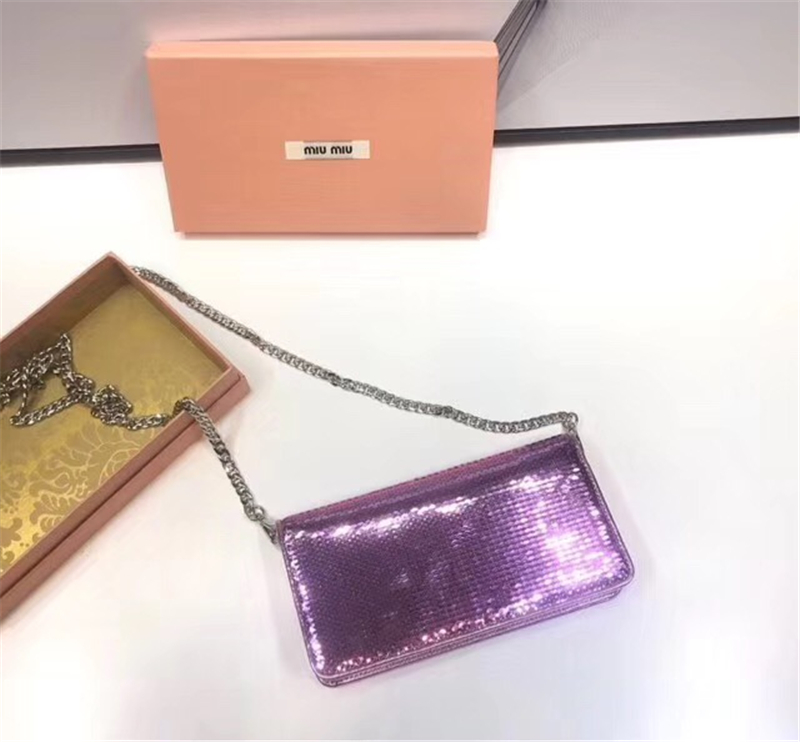 5ZH029 MIUMIU 專柜新款 手工珠刺繡 亮片鏈條小包 紫色