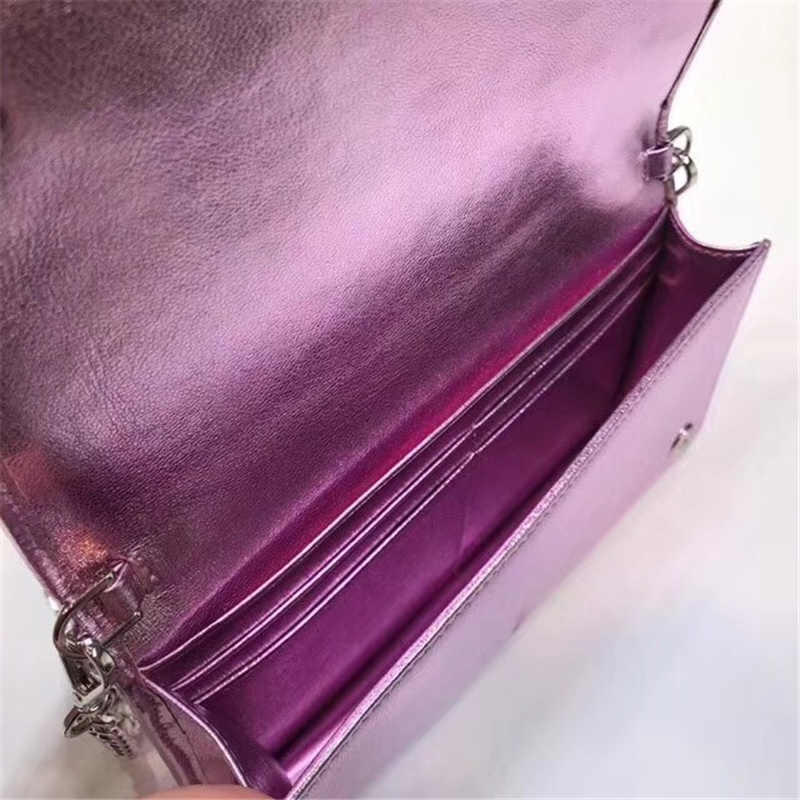 • 結構:緞面襯里,翻蓋磁扣開合,四個卡槽,可拆卸鏈條長肩帶