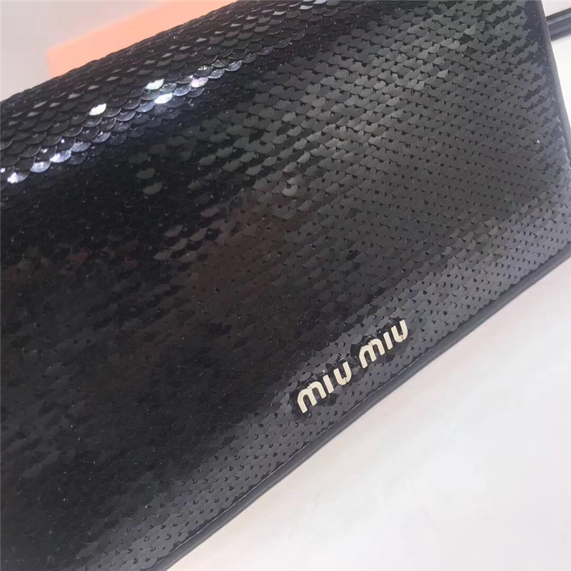 5ZH029 MIUMIU 專柜新款 手工珠刺繡 亮片鏈條小包 黑色