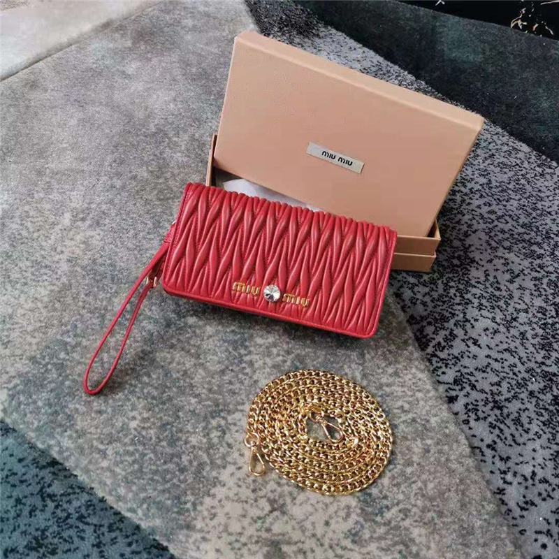 5ZH029 MiuMiu專柜新款 小羊皮 繆繆翻蓋鏈條小包 紅色