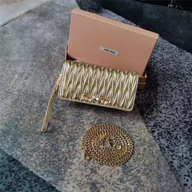 5ZH029 MiuMiu專柜新款 小羊皮 繆繆翻蓋鏈條小包 金色
