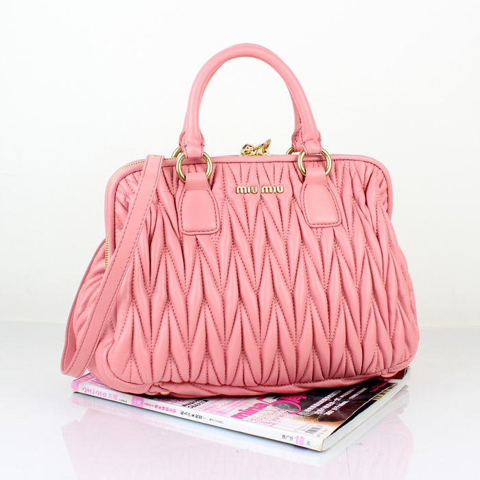 YA88037 MiuMiu 繆繆最新款 提花Top Handle 真皮手提袋 粉色