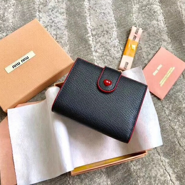 5MV016 MIUMIU 專柜最新 LOVE愛心系列 雙色皮革 兩折錢夾 黑色