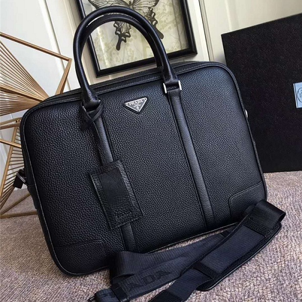 2VE983 Prada普拉達 鹿皮紋 仿鹿皮 雙提手 男士公文包 黑色