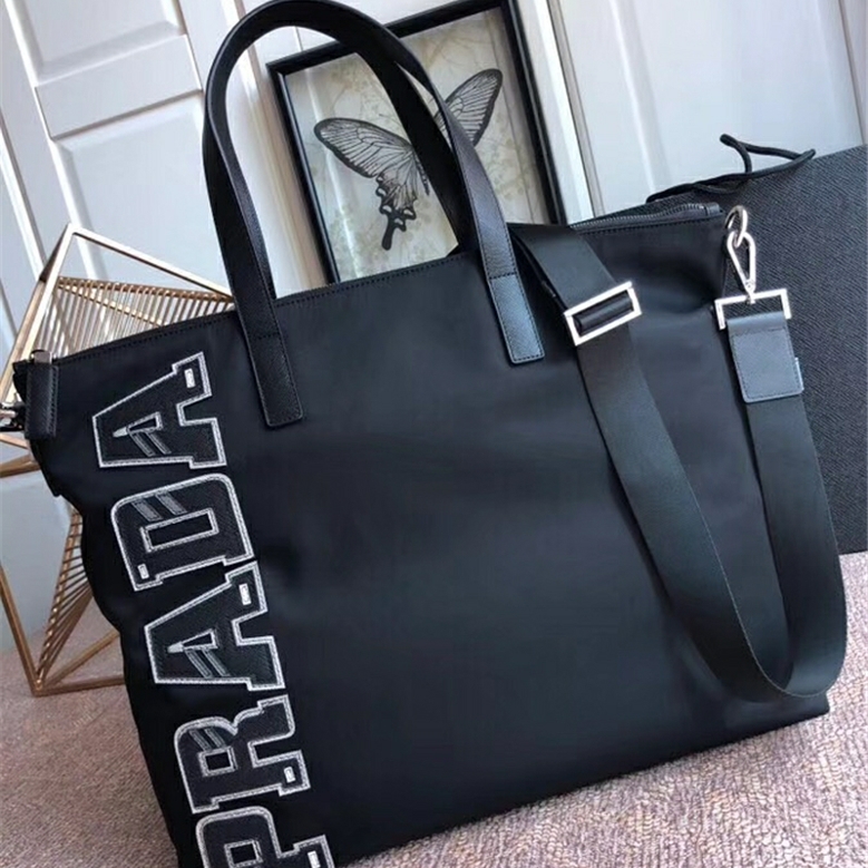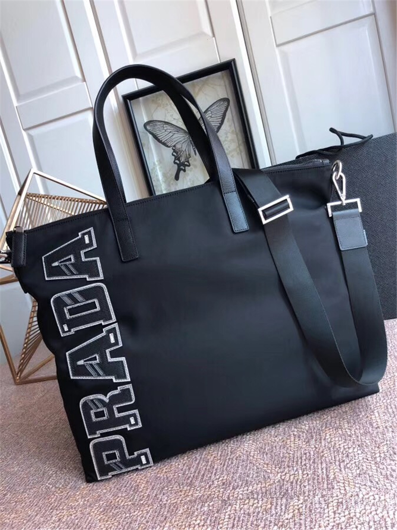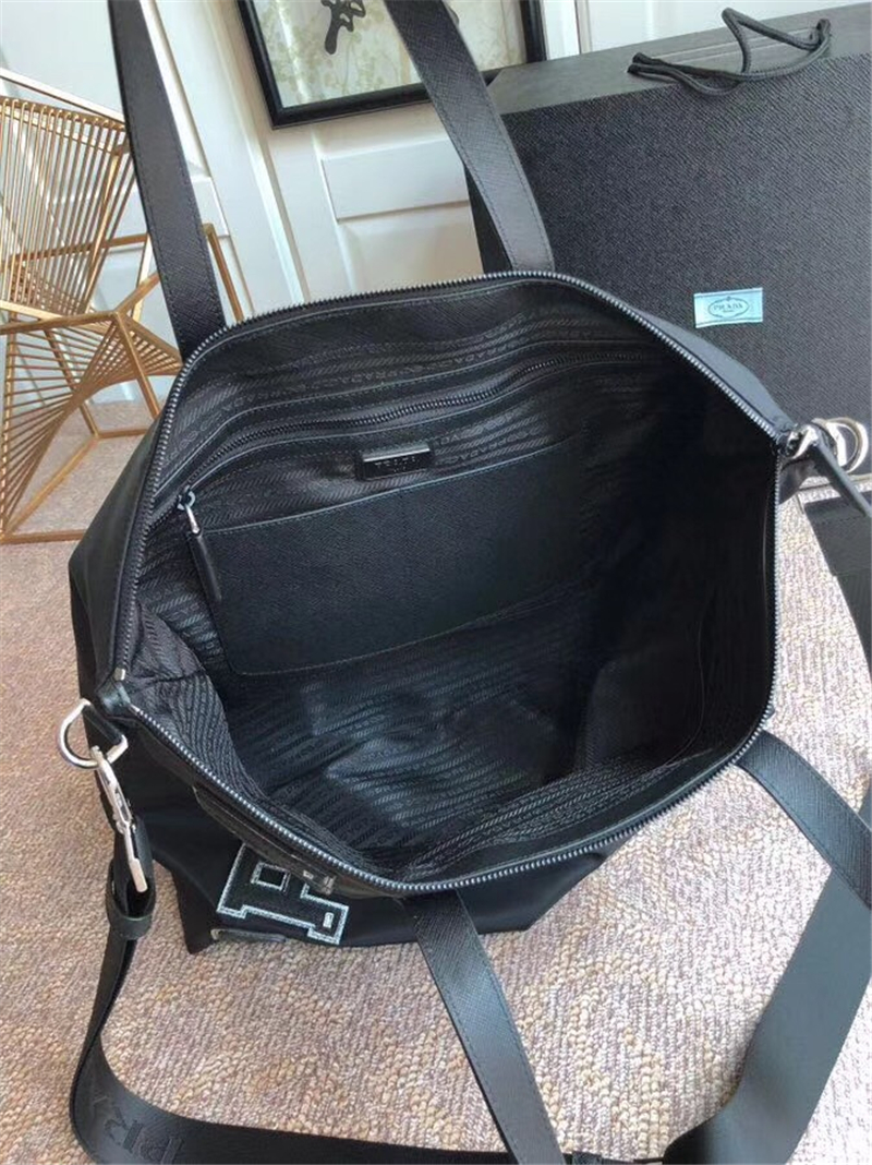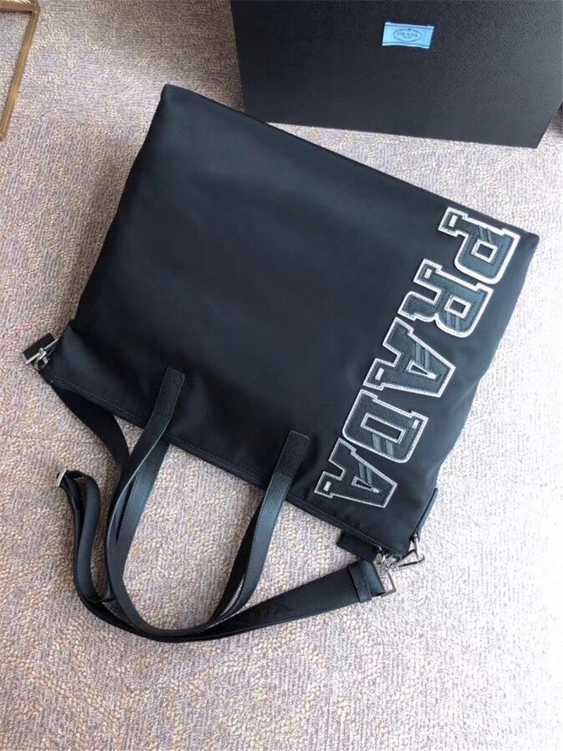 • 2VG024 Prada普拉達男包 皮革雙手柄 字母圖案 尼龍手提包 黑色