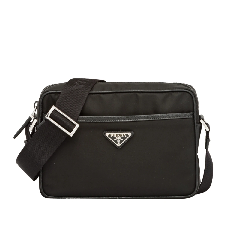 • 結(jié)構(gòu):尼龍材質(zhì) Saffiano皮革裝飾 拋光鋼表面金屬配件 可調(diào)節(jié)的織物肩帶 外面琺瑯三角形徽標(biāo),內(nèi)部徽標(biāo)標(biāo)識 頂部拉鏈封口 前面有拉鏈口袋 Prada標(biāo)志襯里,里面有一個拉鏈口袋