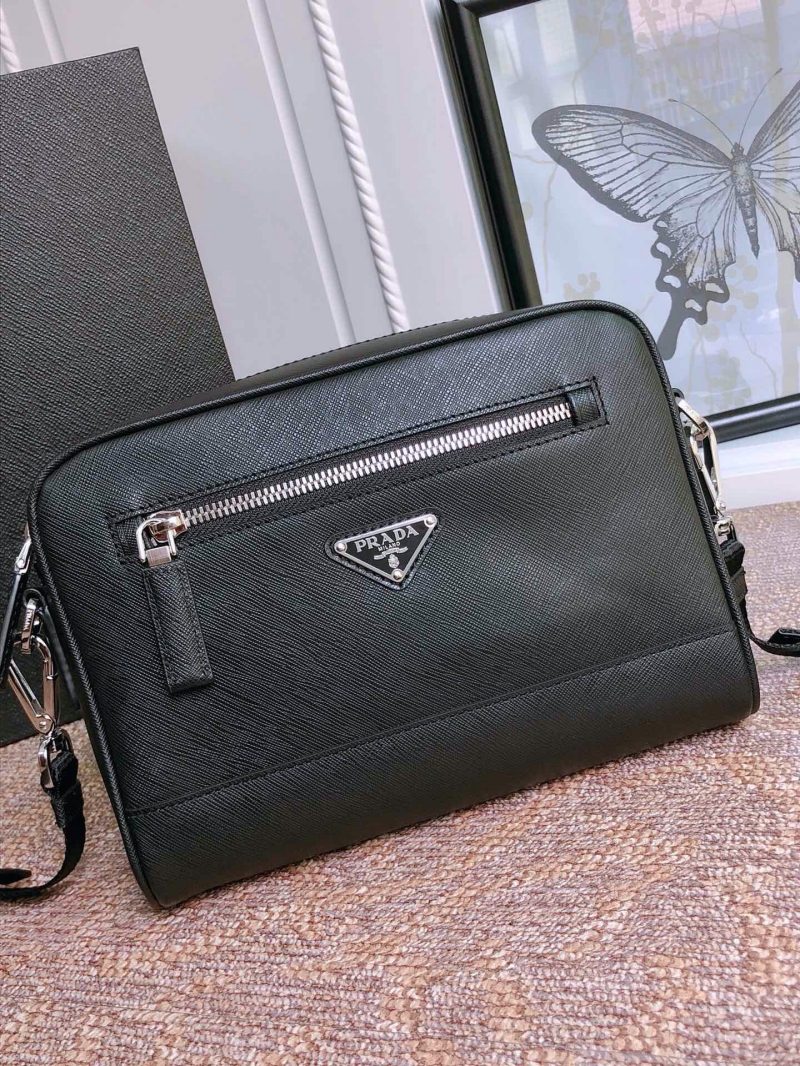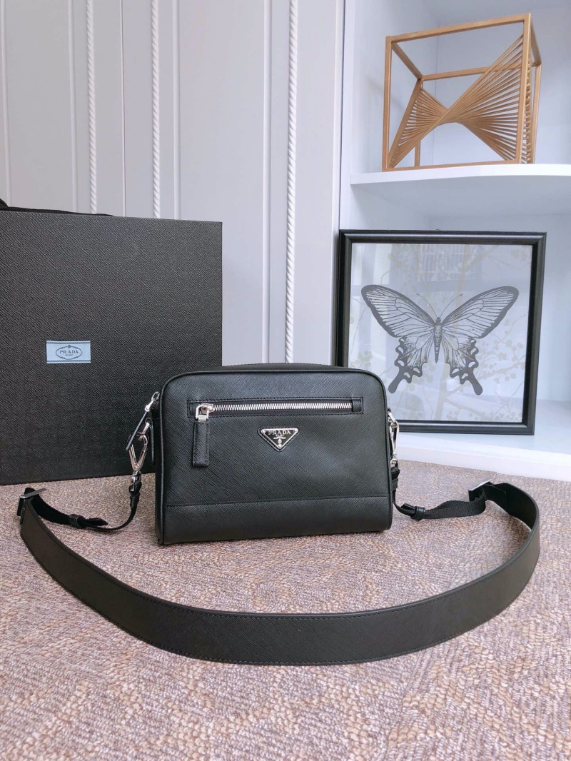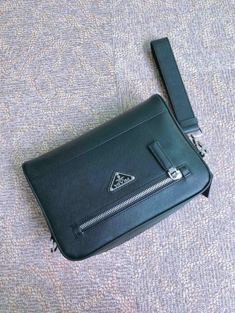 • 2VH063 Prada Saffiano 皮革斜挎包 普拉達男士手包 黑色