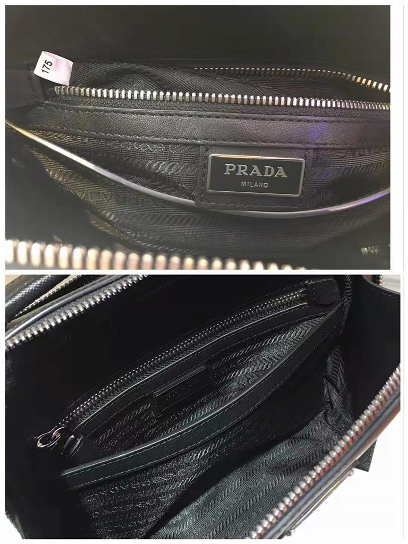 2VH069 Prada Brique男包 十字紋牛皮 橫款 普拉達單肩包 黑色