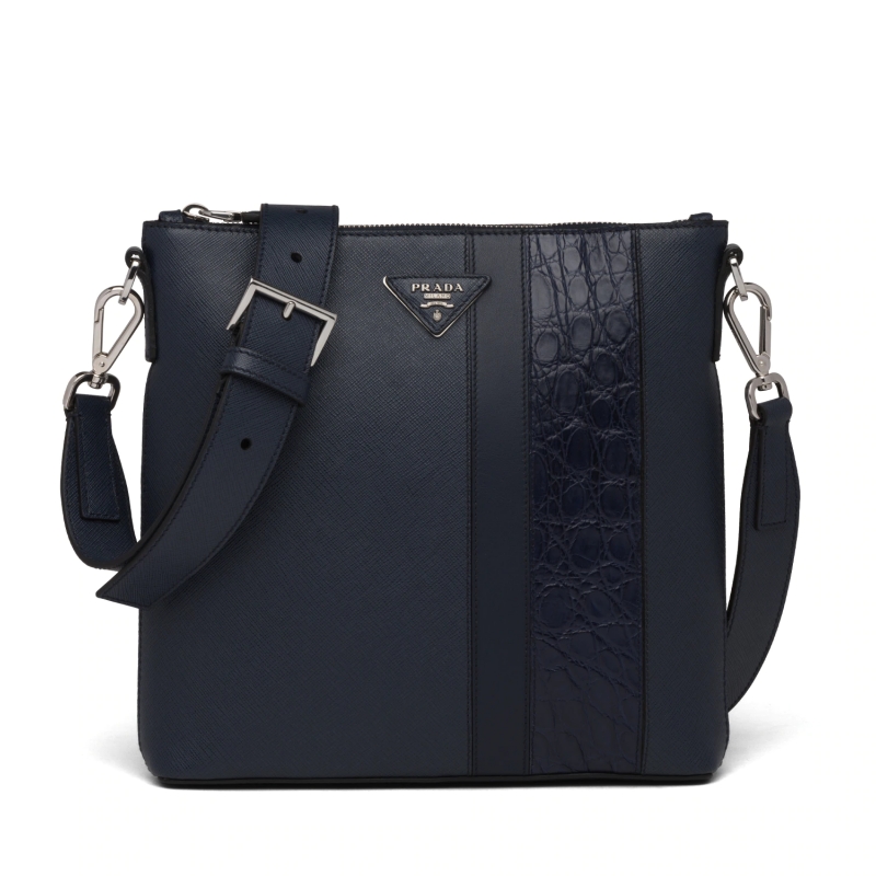 當前位置: 首頁>Prada|普拉達>Prada男包> 2VH089 Prada普拉達 Saffiano 斜挎包 鱷魚紋飾邊郵差包 藍色