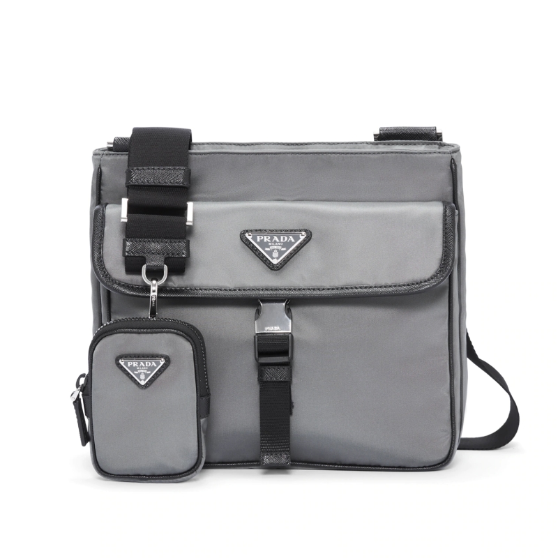 2VH110 Prada 尼龍和Saffiano 皮革斜挎包 三合一男包 灰色