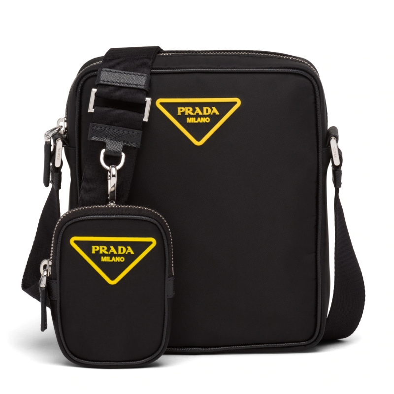 • 2VH112 Prada普拉達尼龍斜挎包 三合一郵差包 黃色徽標