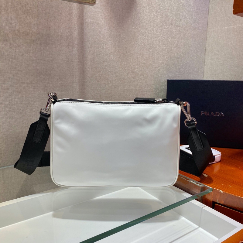2VH113 Prada普拉達尼龍和Saffiano皮革單肩包 三合一郵差包 白色