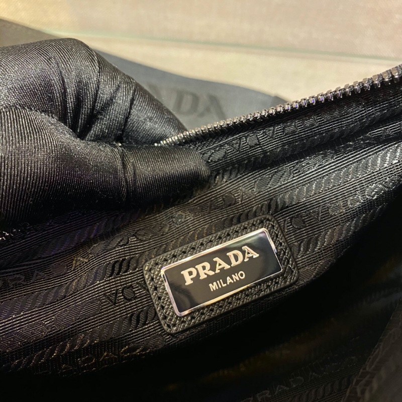 • 結構:可拆卸可調式編織尼龍帶和皮革肩帶搭配可拆卸掛飾正面涂琺瑯三角形金屬徽標拉鏈拉合Prada徽標尼龍襯里