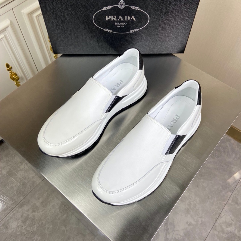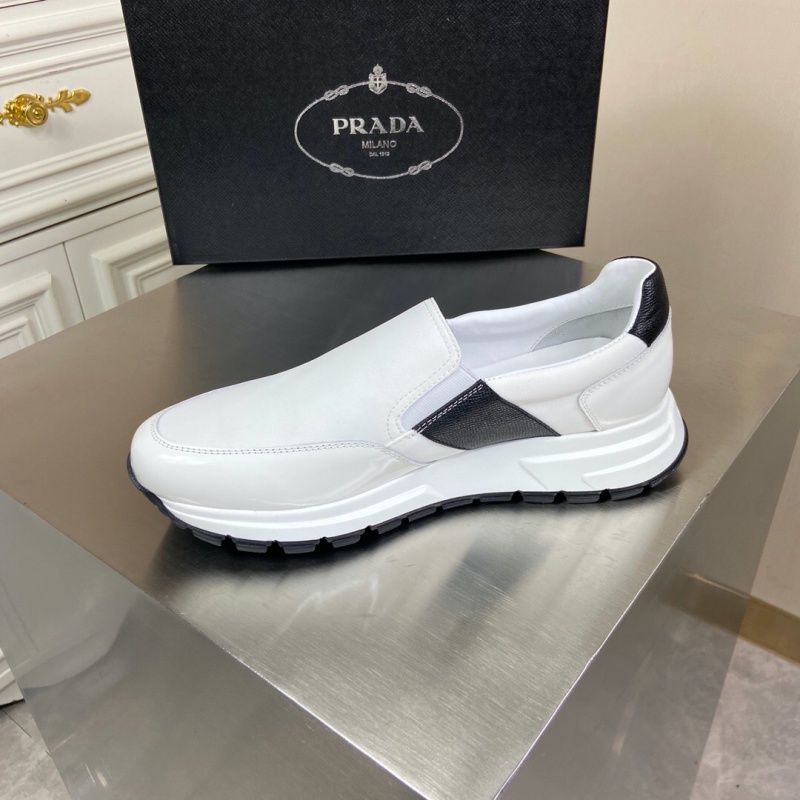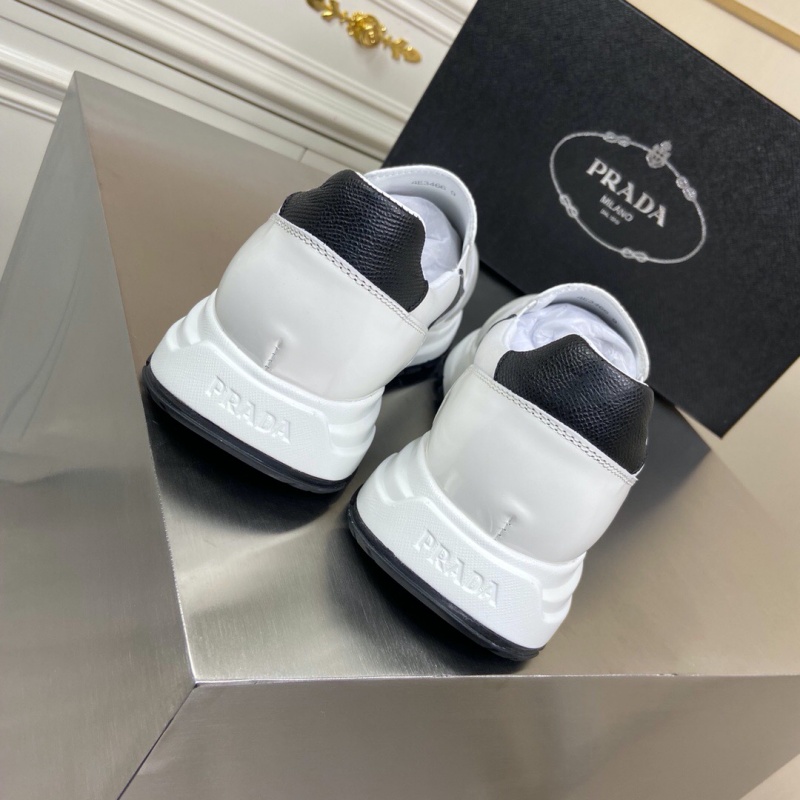 • 4D3480 Prada華達呢和亮面皮革運動鞋 普拉達新款男鞋 白色