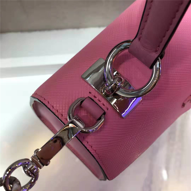 - 1BA186 Prada Monochrome女包 Saffiano皮革 翻蓋 普拉達(dá)鏈條手袋 粉色