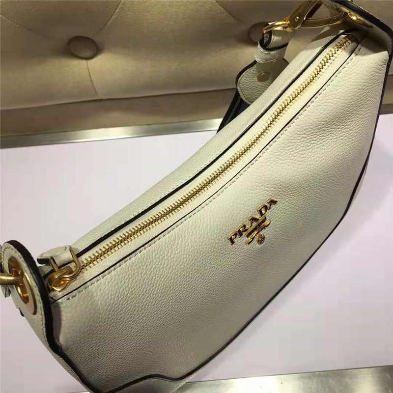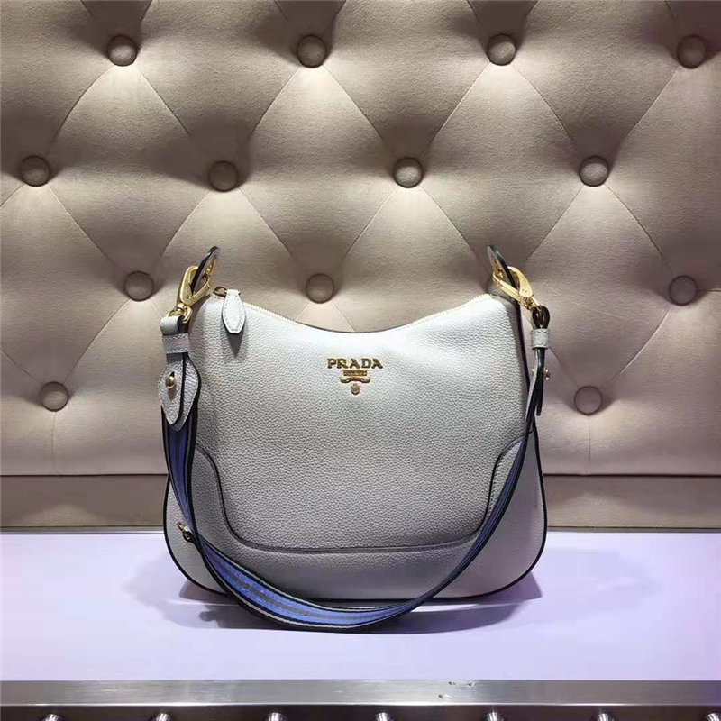 1BC052 Prada女包 彩色寬肩帶 普拉達餃子包 Prada單肩包 白色
