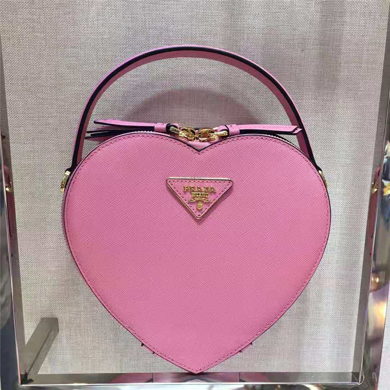 1BH144 Prada Odette女袋 普拉達愛心包 十字紋牛皮 Prada手提袋 粉色