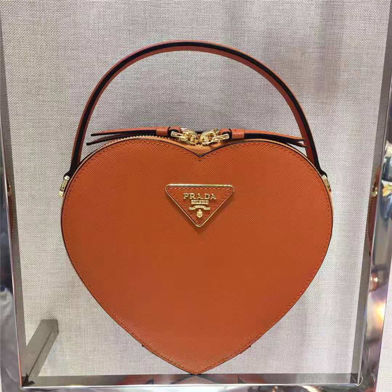 1BH144 Prada Odette女袋 普拉達愛心包 十字紋牛皮 Prada手提袋 橙色