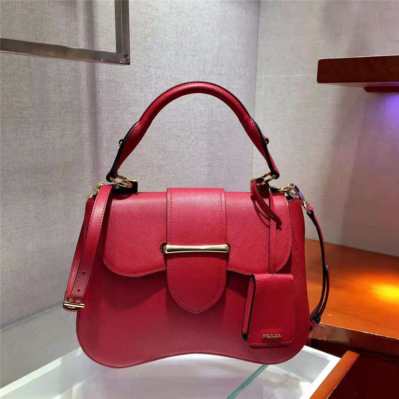 - 1BN005 Prada Sidonie女包 普拉達手袋 中號 小牛皮 普拉達手提包 紅色