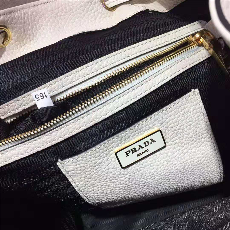 1BZ035 Prada女包 鹿皮紋牛皮 抽繩翻蓋肩背包 普拉達雙肩包 白色