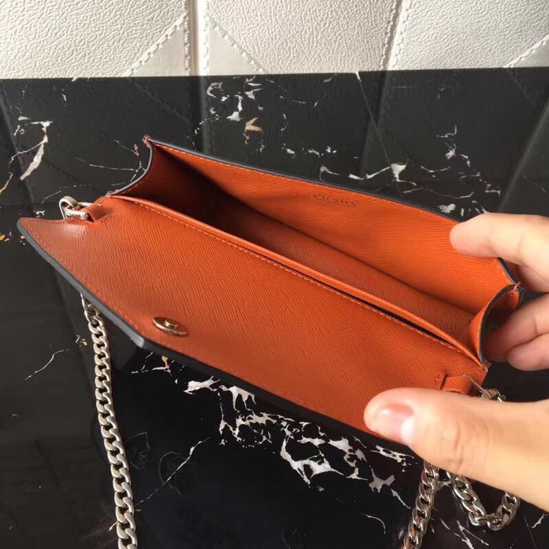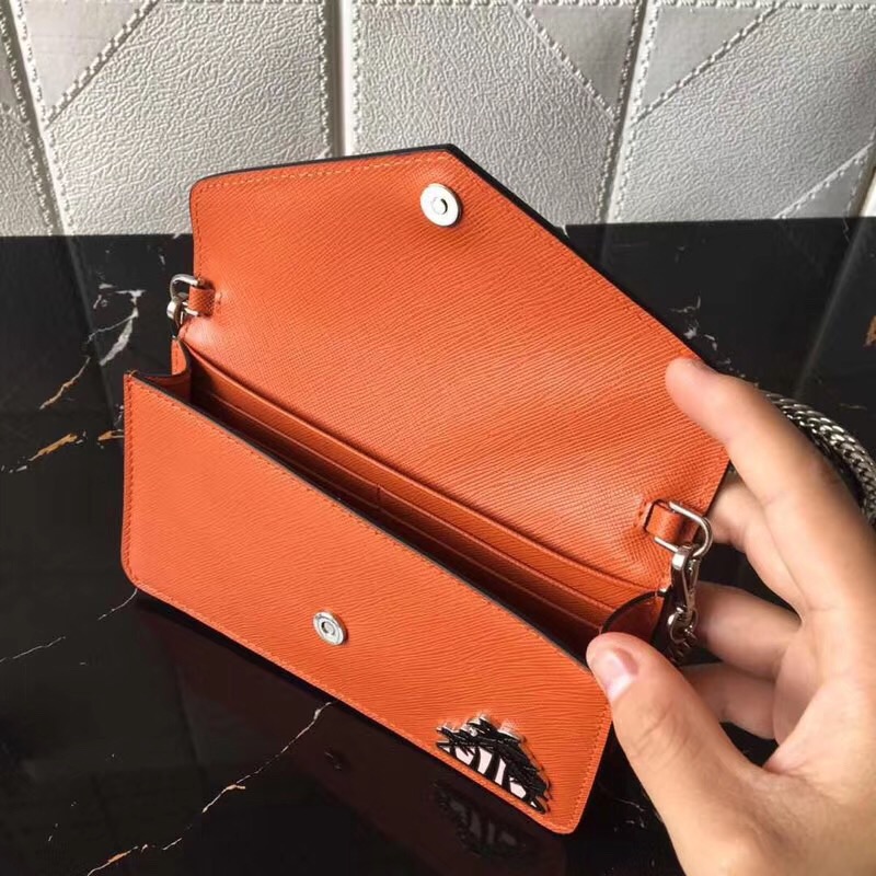 • 詳細介紹:這款Saffiano皮革迷你包飾有彩色搪瓷金屬貼花,可拆卸鏈條肩帶,翻蓋和磁扣扣合,四個銀行卡槽,一個證件袋 一個手機袋,更為別致時尚。