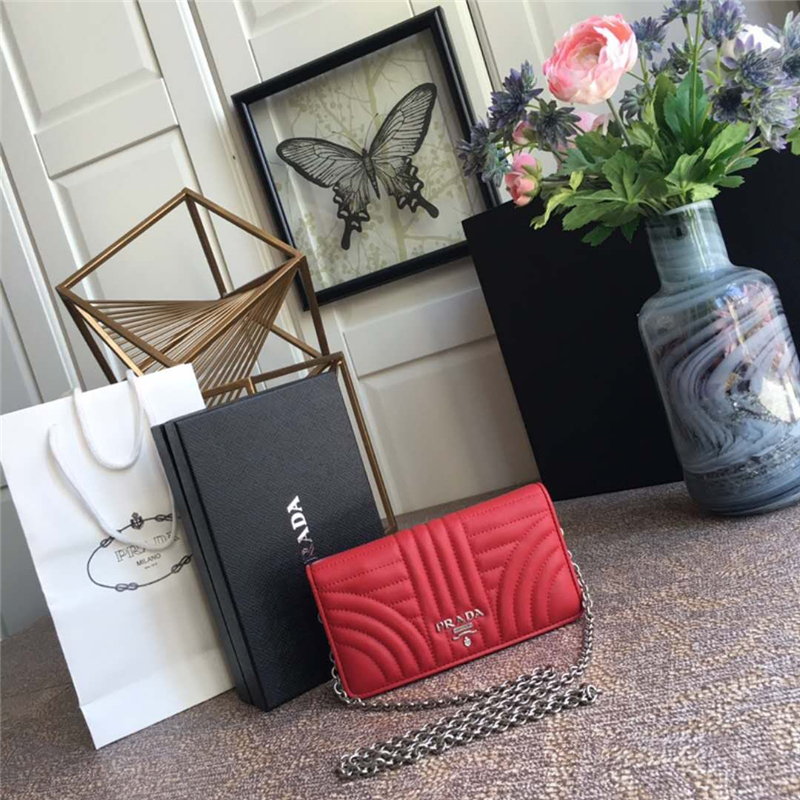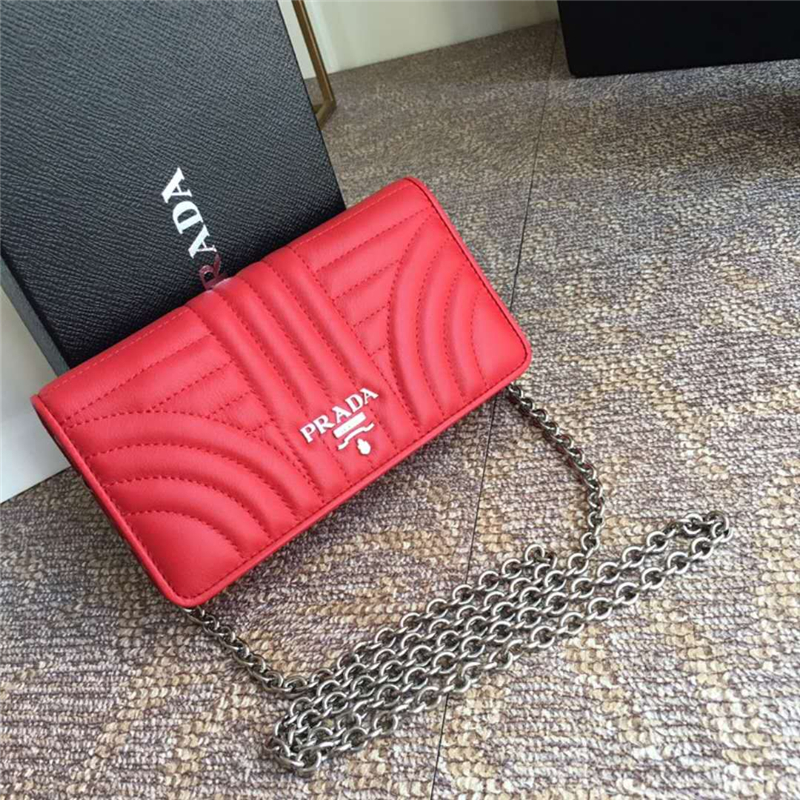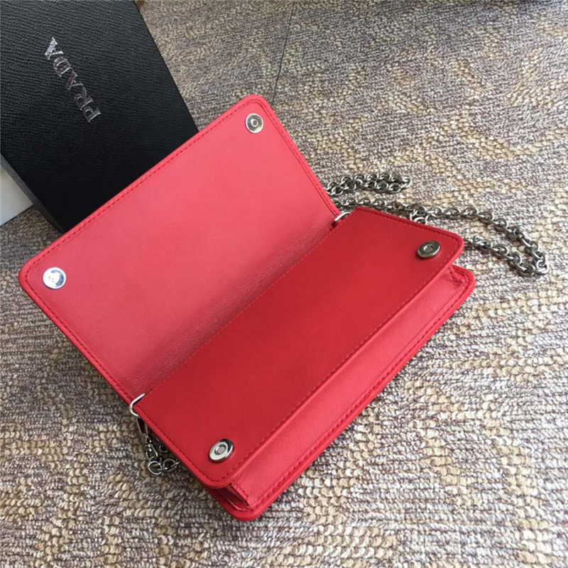 1ZH044 Prada普拉達(dá) 絎縫工藝 手工繡花 多功能肩包 鏈條包 大紅