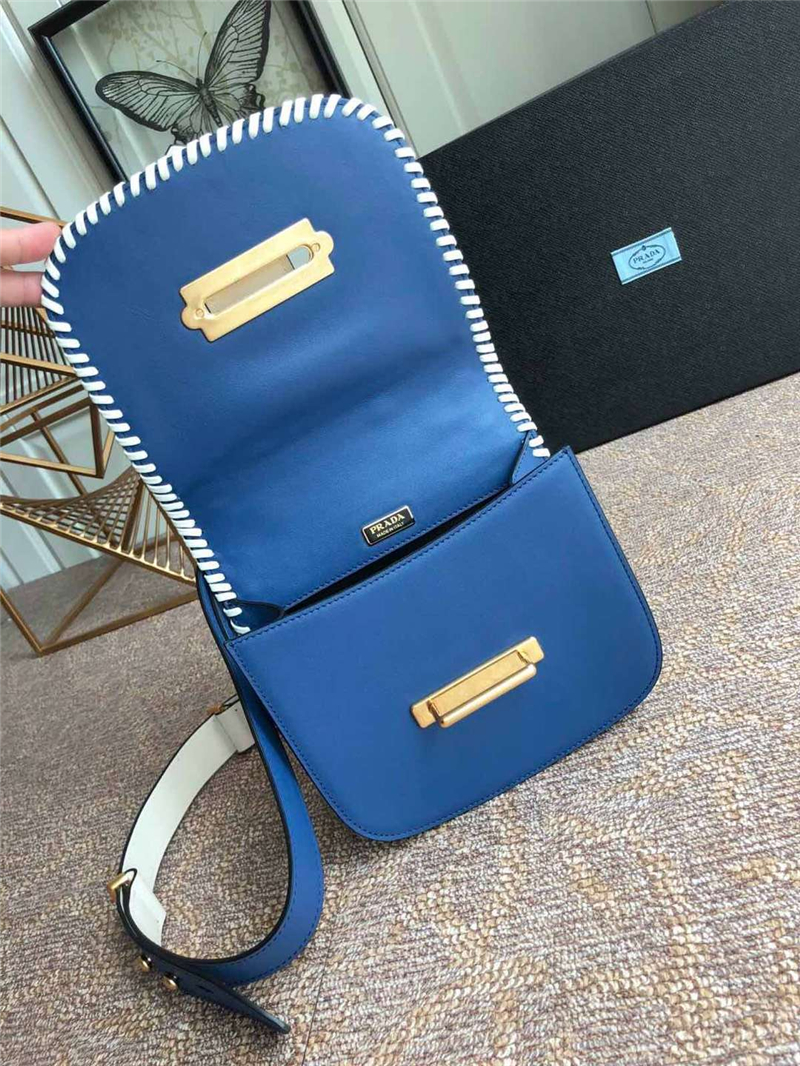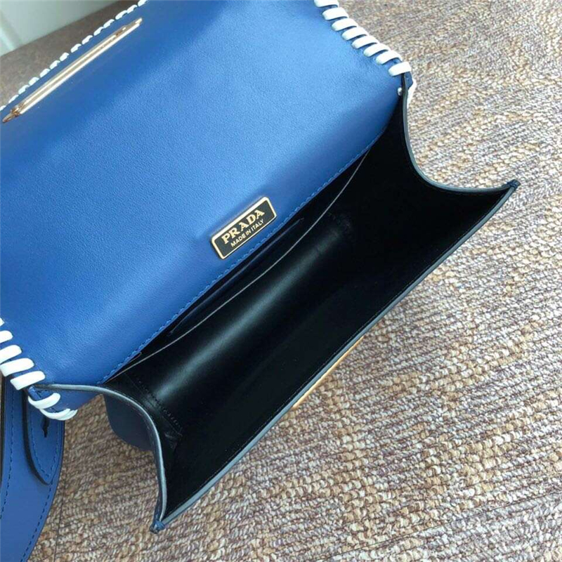lBD0741 Prada 手工編織 進口牛皮 鉚釘裝飾 普拉達肩包 藍色