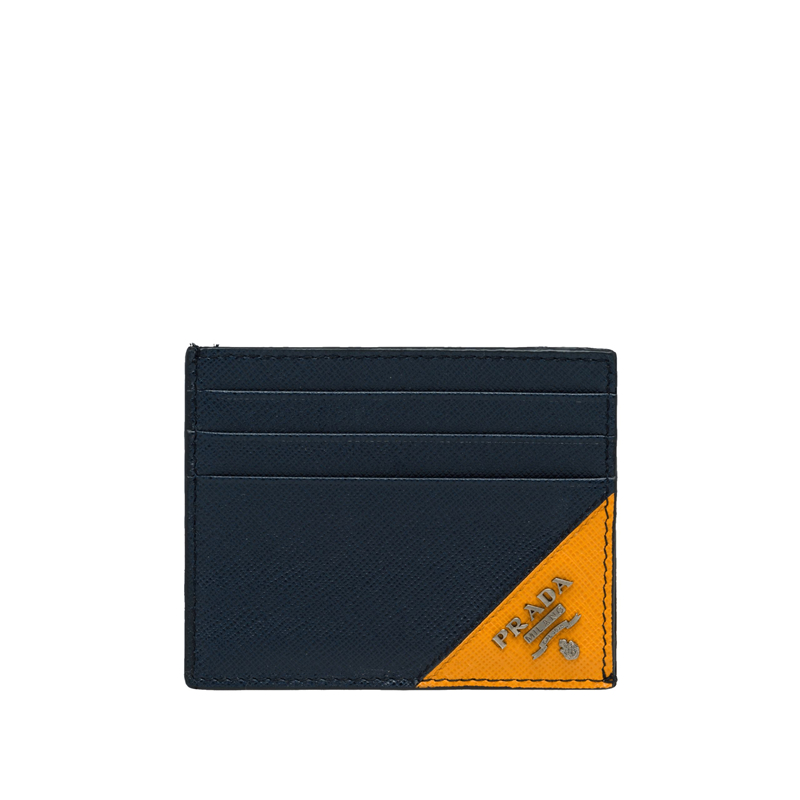 2MC223 Prada普拉達 皮革 嵌花裝飾 卡片夾 海藍拼石榴黃